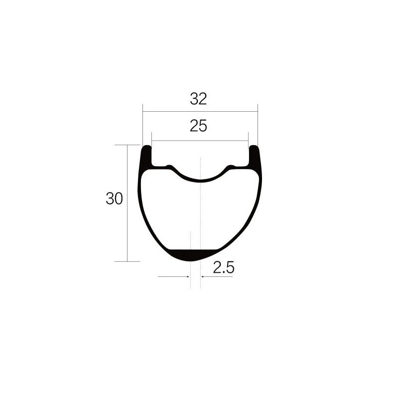 - Felgenprofil: 25 mm Innenbreite, 30mm Höhe.